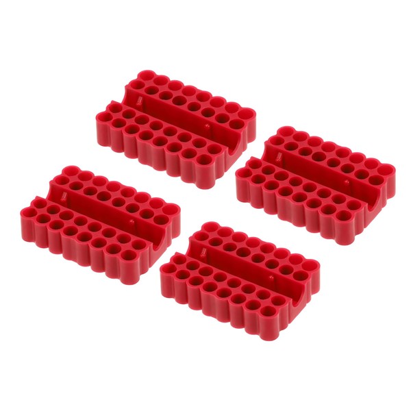 sourcing map 4pcs Plastic Hex Shank Screwdriver Bit Holder Organizer 32 Holes 1/4 Inch Plastic Drill Bits Storage Case for Any 1/4" Hex Shank Metal Driver Bits Use, Red