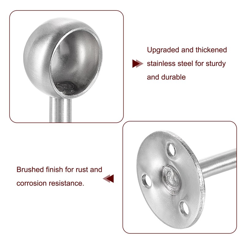The flange rod holder is made of upgraded and thickened stainless steel with a brushed finish for sturdy and durable, rust and corrosion resistance. Even if used continuously for a long time in a humid environment, it still maintains bright luster and optimal performance.