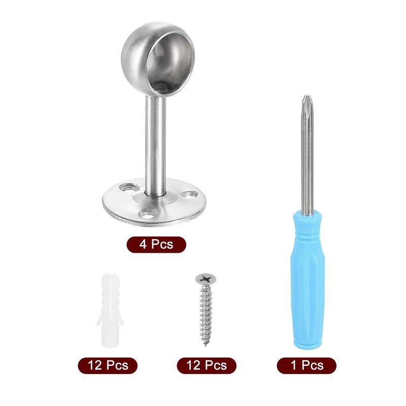 sourcing map 4pcs Stainless Steel Closet Rod Holder Set Semi-Open 0.91" Dia Shower Rod Flange Socket Wardrobe Bracket with Screwdriver and Expansion Tube for Closet Shelf Wardrobe Curtain