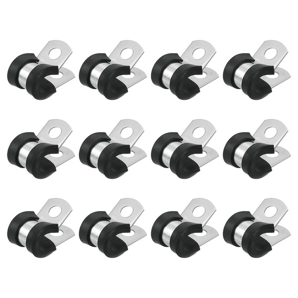 sourcing map 5/16"(8mm) Cable Clamp, 304 Stainless Steel Rubber Cushioned Insulated Clamp R Shape Metal Clamp Tube Holder for Pipe Hose Wire Cord Installation 12Pcs