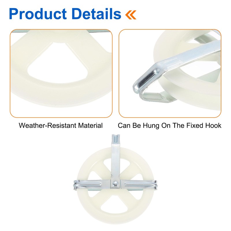 sourcing map 5" Clothesline Pulley with Durable Plastic Wheel and Iron Alloy Axle, Deep Groove Weather-Resistant Drying Line Pulley for Outdoor Clothes Line, White
