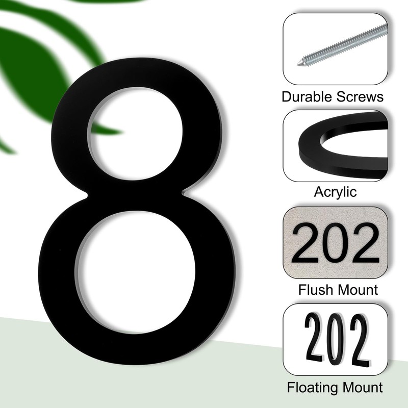sourcing map 5 Inch Modern House Number, Acrylic Floating House Number for Outside Address Sign for House with Nail Kit for Mailbox Yard Home Front Door (Number 8, Matte Black)