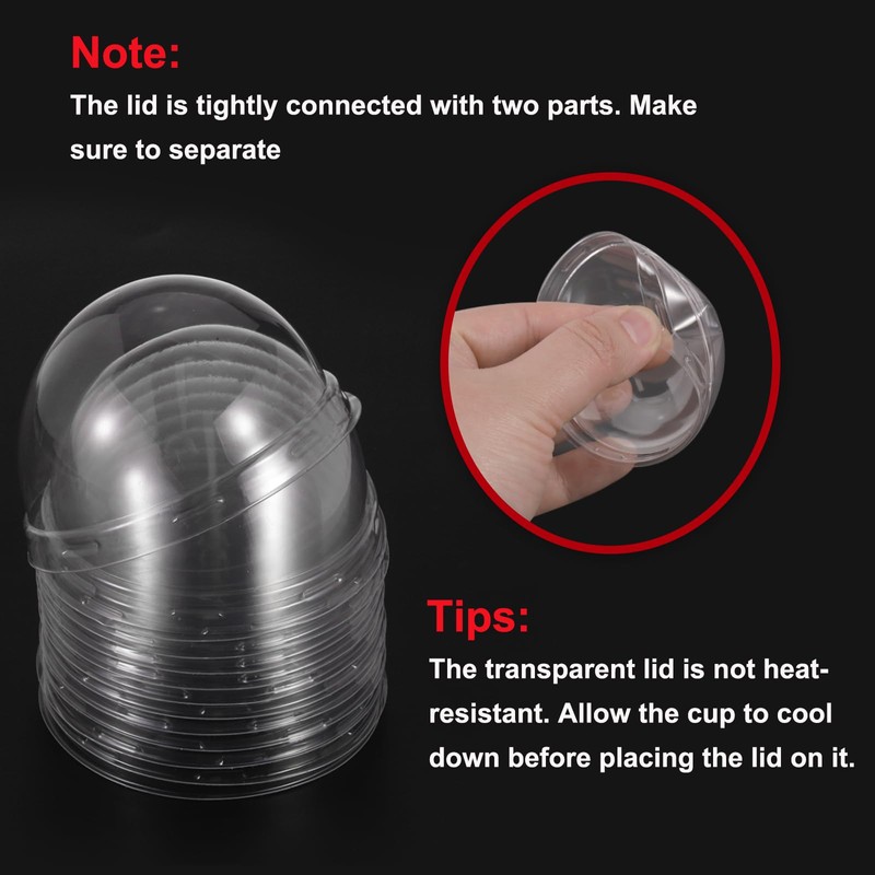 • Package & Size: You will receive 50 pcs of cupcake liners with dome lids, the open diameter is 7 cm/2.75 inch, the bottom diameter is 5 cm/1.96 inch, and the Height is 3.9 cm/1.53 inch, which can meet different baking needs, such as cup cakes, muffins, small cakes, etc.