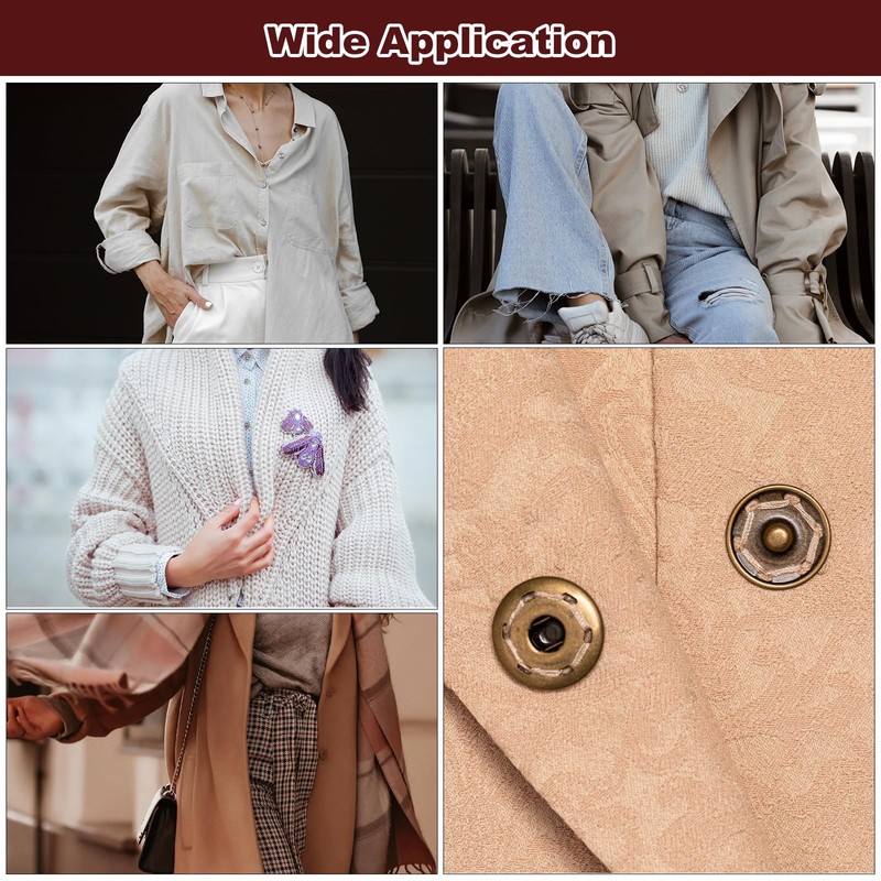 - Widely Applicable - These snap buttons are suitable for sewing projects, crafts, and repairs, such as clothing, coats, jeans, jackets, shoes, hats, overalls, backpacks, bags, leather crafts, DIY crafts, etc