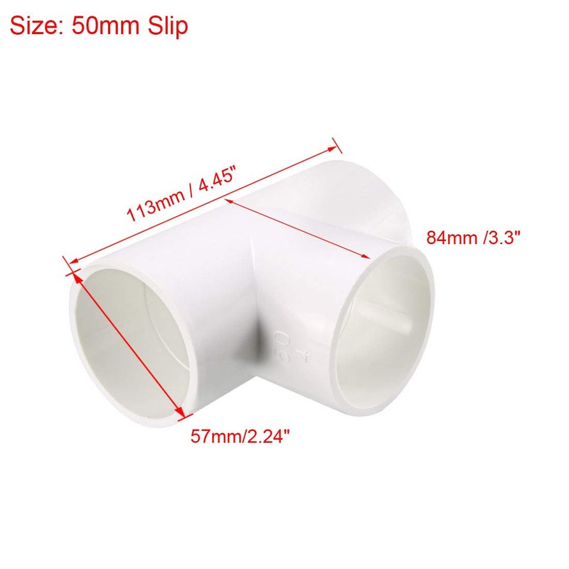 sourcing map 50mm Slip Tee PVC Pipe Fitting T-Shaped Coupling Connector
