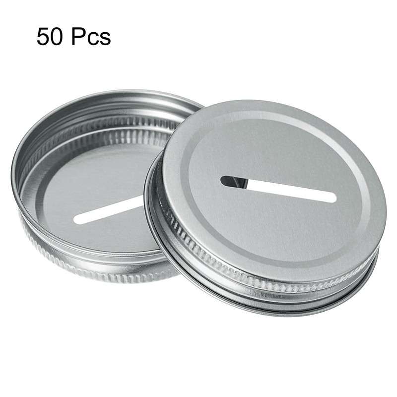 sourcing map 50Pcs Coin Slot Bank Lid for Mason Jar, 70mm/2.76" Regular Mouth Tin Plate Caps Inserts for Canning Jars Cover, (Silver Tone)