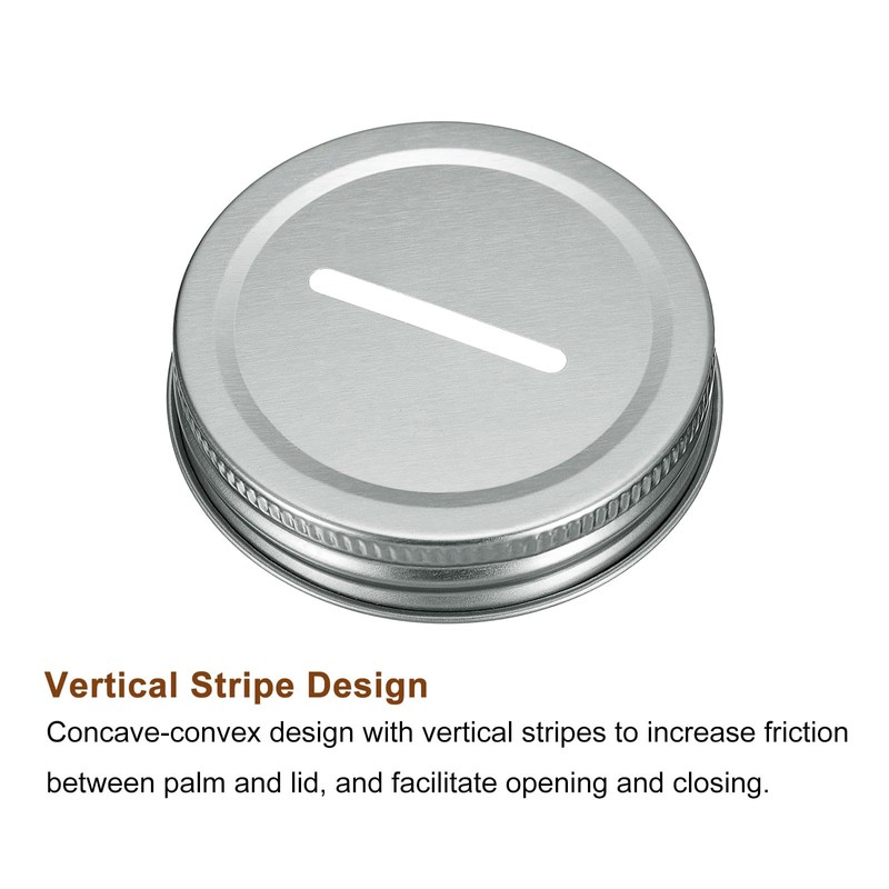 Compact Size - Designed to fit regular mouth(70mm/2.76") mason jars and with a 36mm x 4mm coin slot, therefore, most sizes of coins are suitable for these lids. A useful design for you to collect coins and make changes more convenient.