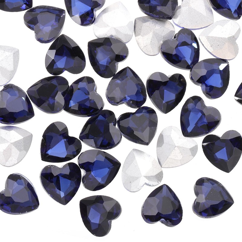 sourcing map 50Pcs Heart Rhinestones, 10mm Pointed Back Heart Glass Rhinestone Gems Crystal for Jewelry Making Costume DIY Crafts, Dark Blue