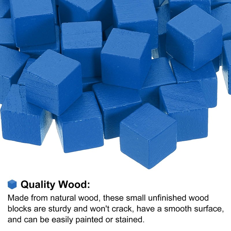 • [Size & Packaging] - Each wooden cube measures 1.5x1.5x1.5cm / 9/16"x9/16"x9/16"(L*W*H), the color is blue, and the package contains 50 pcs wooden blocks
