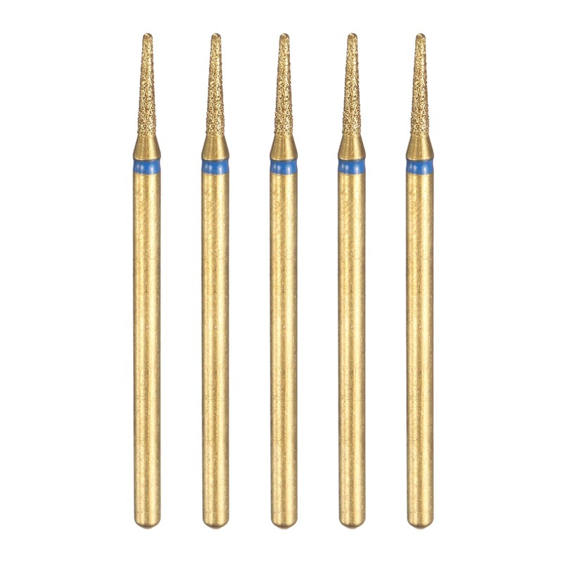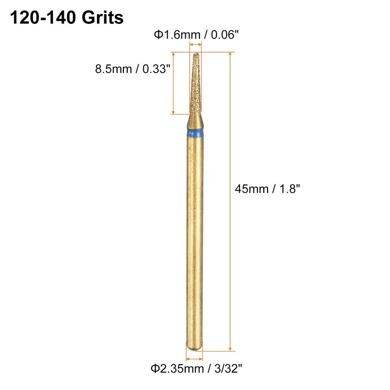 sourcing map 5pcs 120-140 Grits Diamond Grinding Bit 1.6mm Tapered Head 2.35mm Shank 8.5mm Length Titanium Plated Stone Sanding Drill Bits Rotary Tool for Nails Grinding Polishing