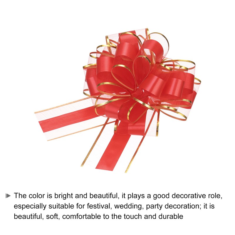 - Bright colored organza pull bows with ribbons are suitable for wedding car decoration bows, gift wrapping bows, large present decorating bows, DIY crafts handicraft decoration, gift wrapping packaging, holiday decoration, wedding gift baskets decoration, flower design, party decoration, floral bouquet ribbon, scrapbooking, and can be used to decorate Valentine's Day, Christmas, Halloween, Thanksgiving, Teacher's Day, etc.