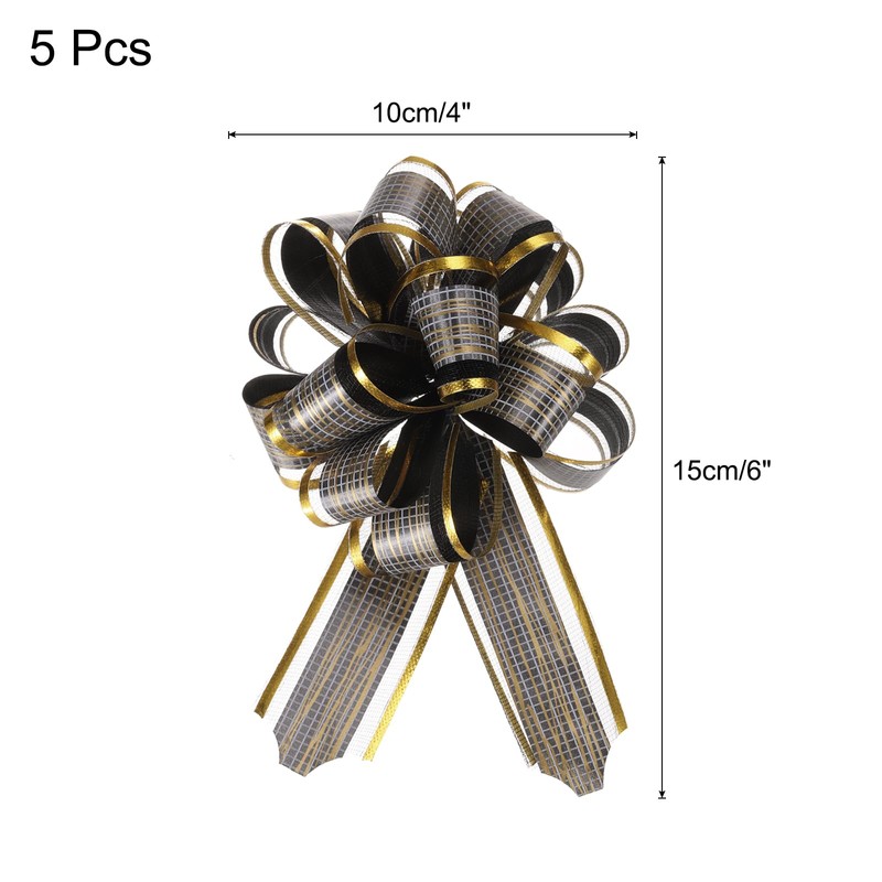 sourcing map 5pcs 6 Inch Large Pull Bow Gift Wrapping Bows Ribbon Organza Bows Black for Wedding Baskets Presents Christmas Party