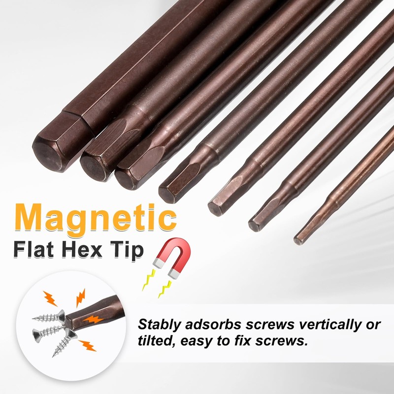 - Features - The screw driver hex head of the screwdriver is magnetic and easy to use. It can absorb screws stably vertically or tilted, making it easy to fix screws, especially in confined spaces. Precision CNC machined flat hexagonal head can be in close contact with the screw, making the removal and installation more stable and not easy to slip.