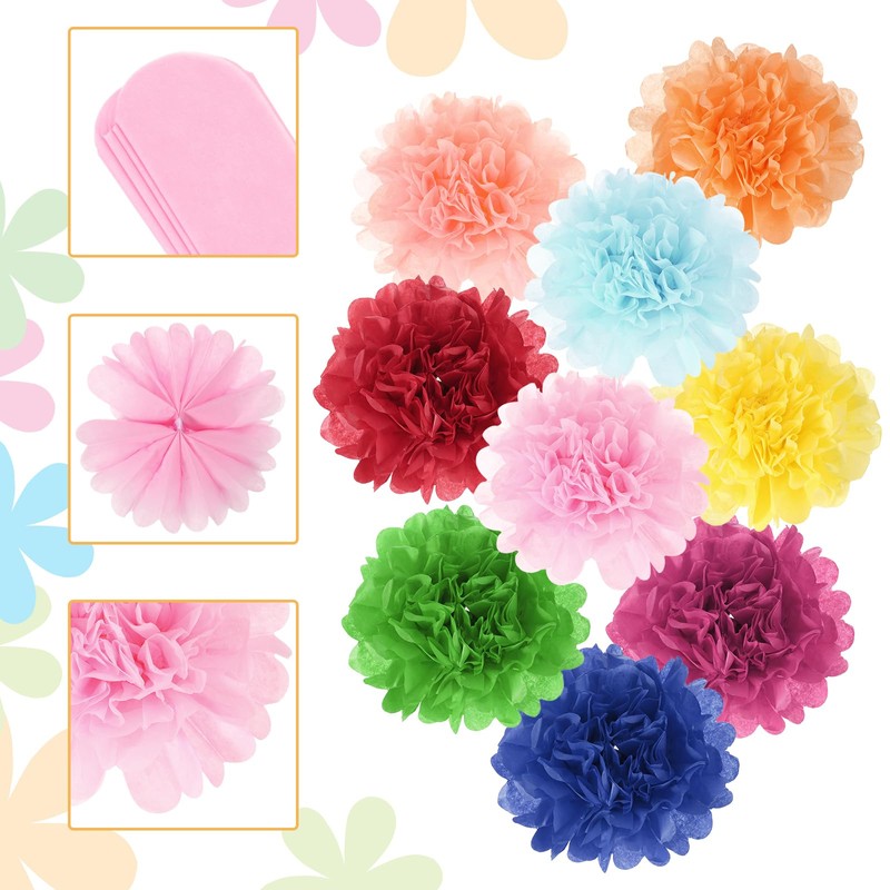 - These tissue paper pom poms can be used for your DIY projects,enrich your spare time and make your home more beautiful,their delicate shape will also make your crafts more special,the decorative paper flowers look lovely and delicate, wonderful decorations for festival and party.