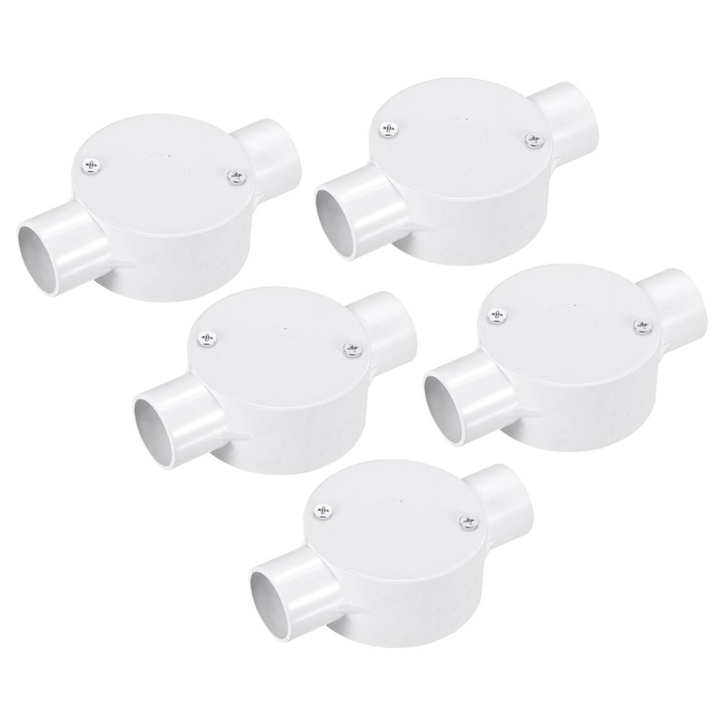 sourcing map 5Pcs PVC Conduit Box Junction Box 2 Way 25mm with Cover, M4 Screws for Home Hose Electrical Conduit Electronic Projects