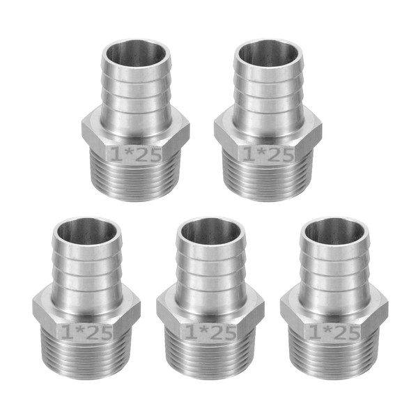 sourcing map 5pcs Stainless Steel Barbed Fitting 1" NPT Male to 1" Hose ID for Home Brew Pipe Fitting Direct Thread Tower Connector Durable Construction