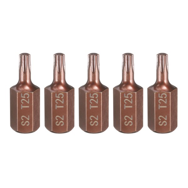 sourcing map 5pcs T25 Torx Screwdriver Bit 10mm Hex Shank 30mm Length S2 Steel Security Tamper Proof 6 Point Head Hex Screw Driver Bits