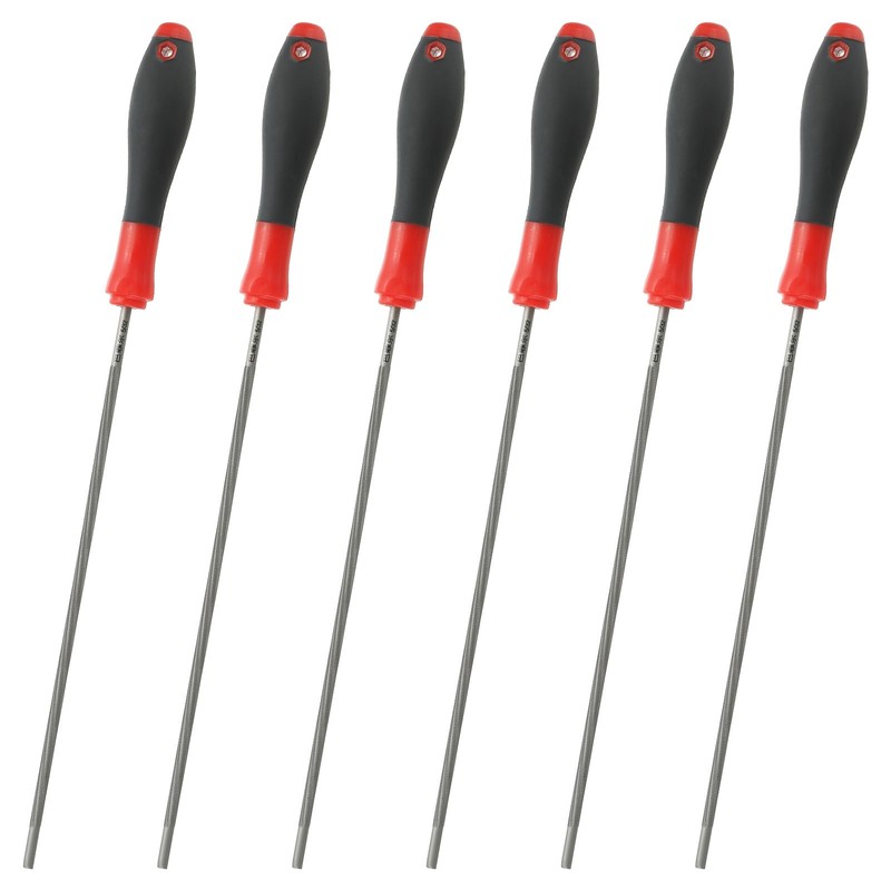 - [Advantage] - The plastic handle of this steel chainsaw file is ergonomically shaped for comfortable control, reducing hand stress and enhancing precision. It ensures a pleasant user experience for extended periods of use. Additionally, the large hole in the handle facilitates convenient storage by allowing easy hanging