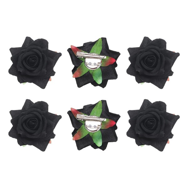 sourcing map 6 Pcs Rose Flower Hair Clips 3 Inch Flower Hair Pins Flower Brooch for Women Hair Accessories Black