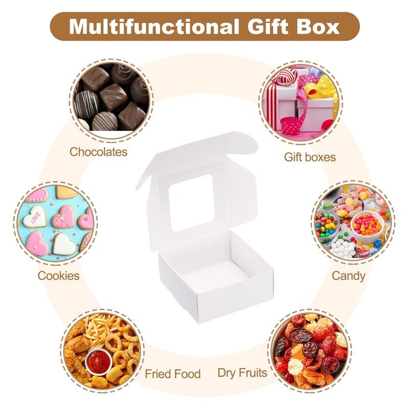 sourcing map 60Pcs Kraft Soap Boxes, 2.6 x 2.6 x 1.2Inch Mini Kraft Treat Box with Clear Window for Candy Cookie Gift Party Festival Favor Treats Packaging (White)
