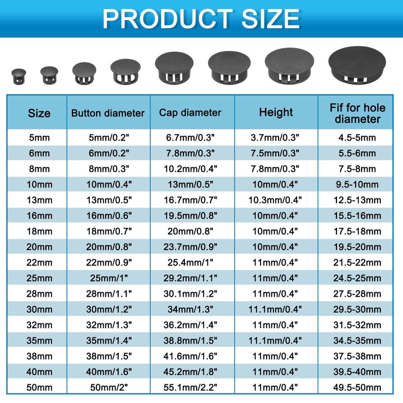 - Package Includes - 60pcs plastic hole plugs set in 6mm/0.2inch sizes. Fit for hole: 5.5-6mm. Please confirm the size before buying these round-hole plastic plugs;