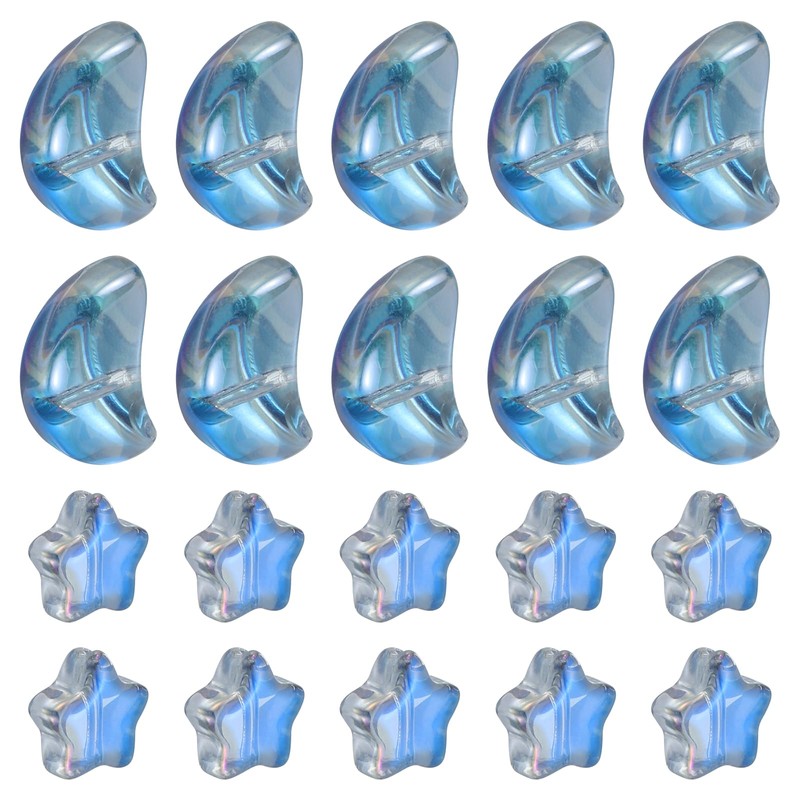 - [Package and Size]: Star Shaped Bead Size: 14x6mm / 0.55x0.24inch(L*W); Star Shaped Bead Size: 8x8mm / 0.31x0.31inch(L*W); Package Content: 30Pcs x Star Shaped Beads; 30Pcs x Moon Shaped Beads