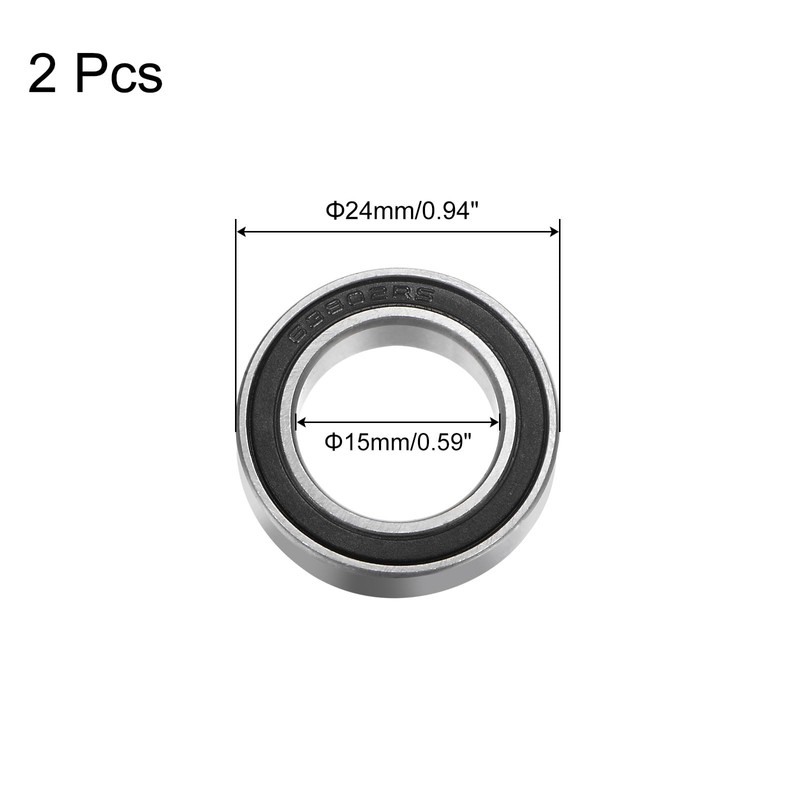 - Size: model: 63802-2RS; dimensions: 15 mm x 24 mm x 7 mm/0.59 inches x 0.94 inches x 0.28 inches (inner diameter*outer diameter*thickness)