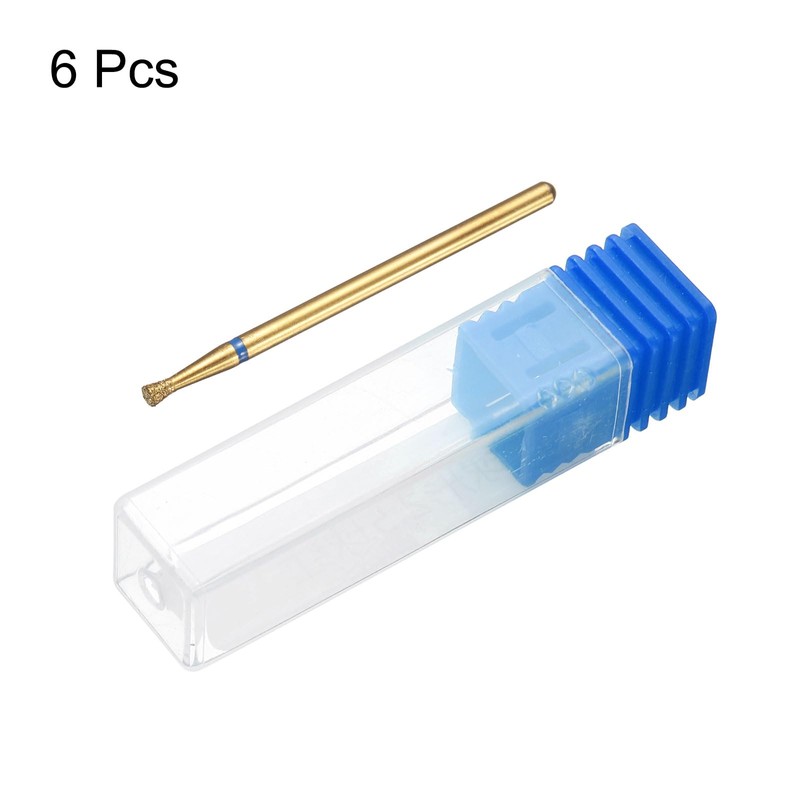 sourcing map 6pcs 120-140 Grits Diamond Grinding Bit 2.1mm Inverted Cone Head 2.35mm Shank 2mm Length Titanium Plated Stone Sanding Drill Bits Rotary Tool for Nails Grinding Polishing