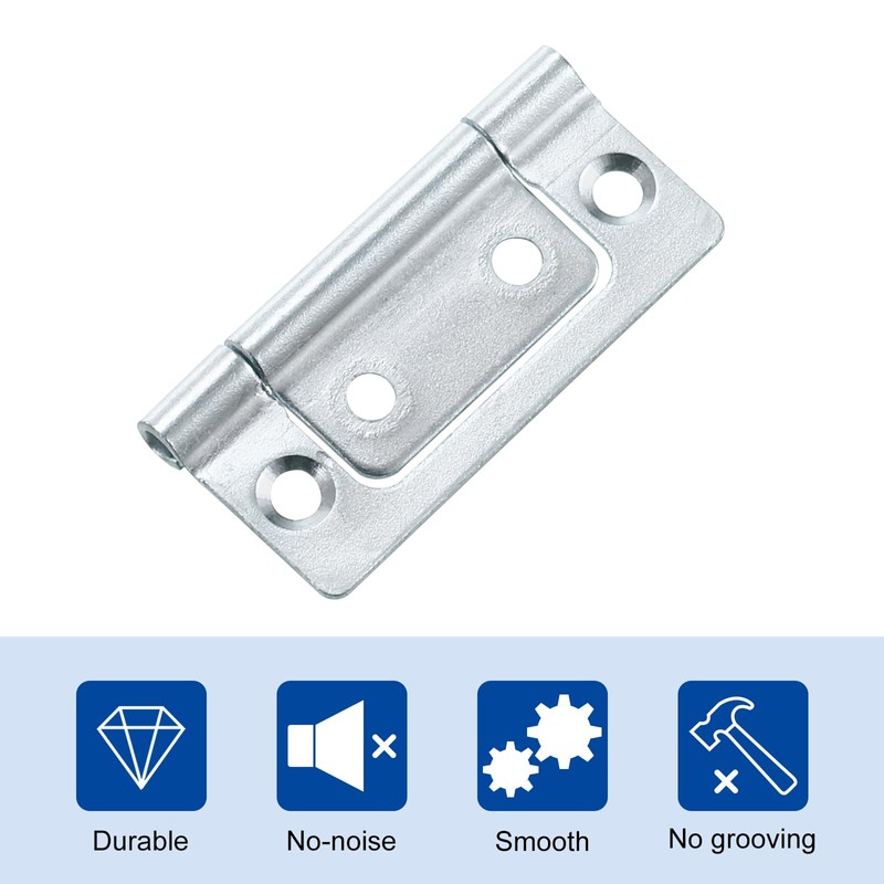 - Specification: Item: Non-Mortise Door Hinges; Material: Iron; Color: White Zinc; Size: 51x25x1.2mm/2x1x0.047inch(LxWxT; Circular hole diameter: 4.3mm/0.17inch; Package Includes: 6Pcs x Door Hinges; Stainless Steel M4 x 24 Pcs Screws
