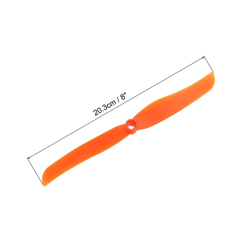 - Number of Vane: 2; Propeller Diameter: 20.3cm/8 Inch; Motor Shaft Hole Diameter: 0.6cm/0.2 Inch; Blade Root Thickness: 1cm/0.4 Inch; Style: Large hole paddle; Color: Orange; Material: Plastic; In the package of: 6 Pcs x RC propeller (Each paddle include 9 plastic washers)
