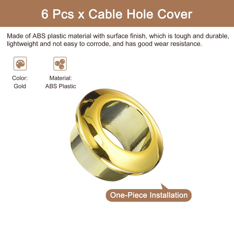 sourcing map 6Pcs Cable Hole Cover, 12/32 inch(18mm) ABS Office Desk Cable Wire Cord Grommet Cable Cord Organizer for Office Desktop Wire, Gold