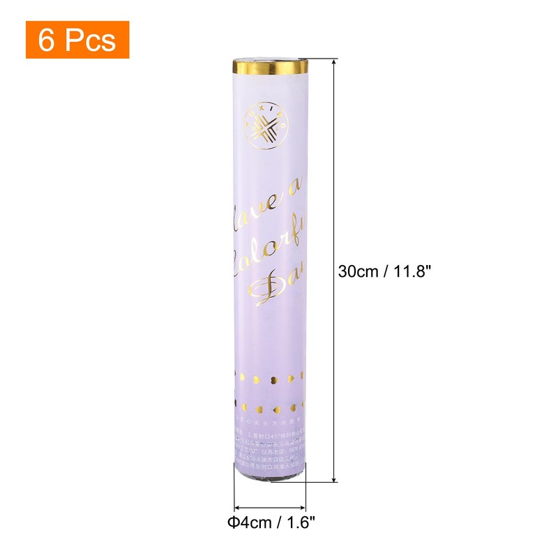 - What you get: You will receive 6pcs confetti popper including pink purple confetti paper. Each popper is a plastic container with confetti. Size: 30 cm x 4 cm / 11.8 inch x 1.6 inch (H*D). They will create a happy atmosphere for celebrations, making your party an unforgettable event.