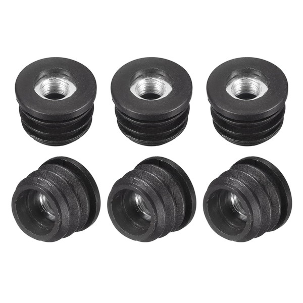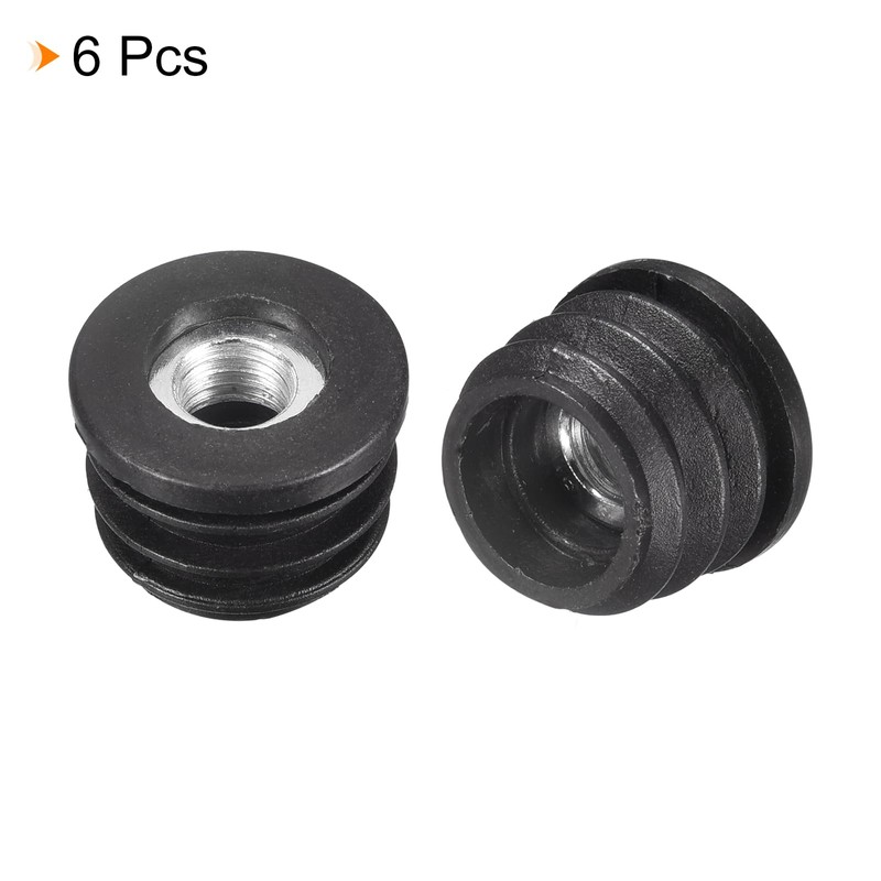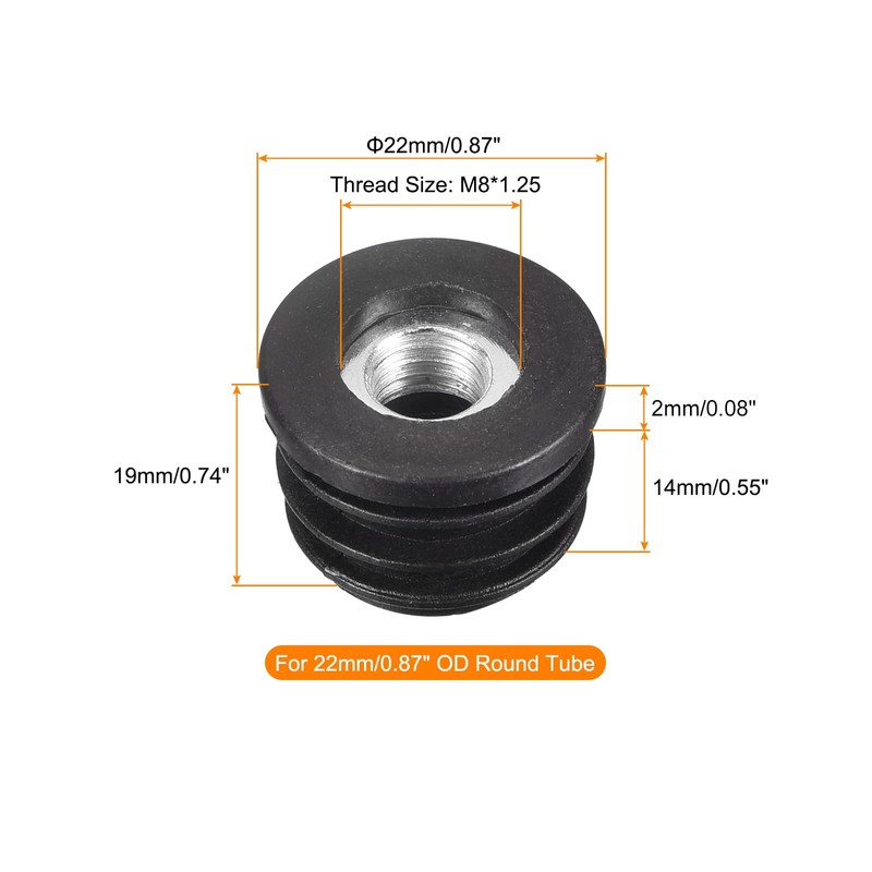 sourcing map 6Pcs Inserts for Round Tubes with M8 Thread, for 22mm/0.86" OD Round Tube, Round Black Plastic Adjustable Plug Caster Insert Chair End Caps Furniture Leg Plug
