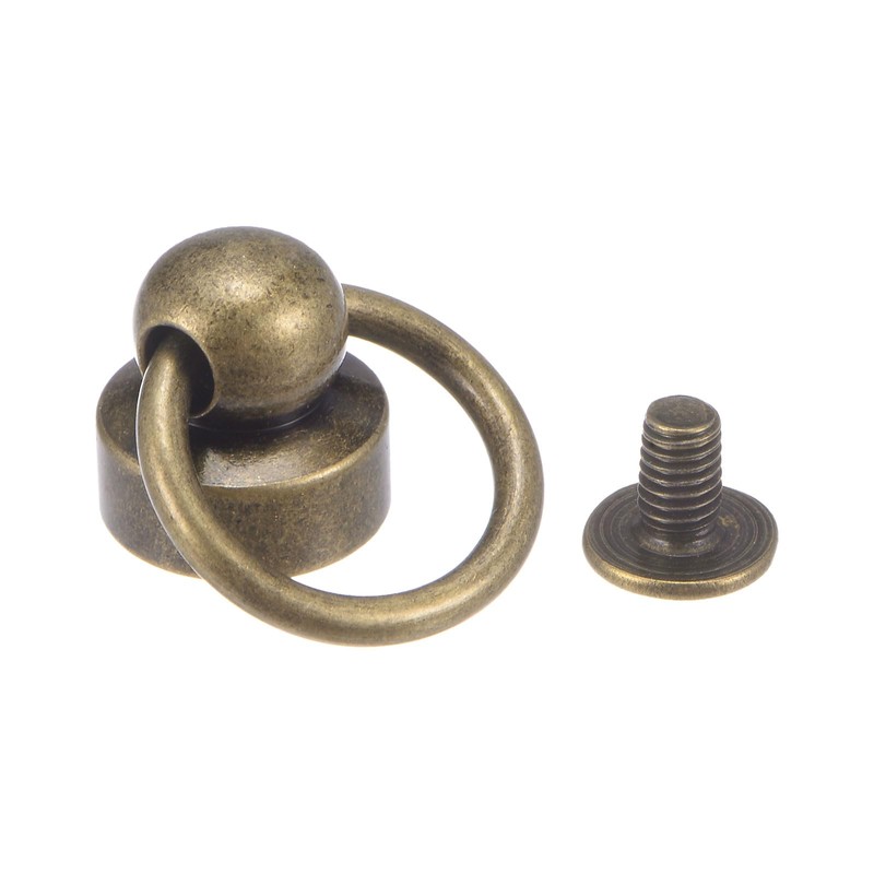 sourcing map 6pcs O Ring Brass Round Head Rivets Studs 9mm Metal Rivets Fasteners with Screw and Pull Ring for DIY Leather Craft Purse Mobile Case Handbag, Bronze