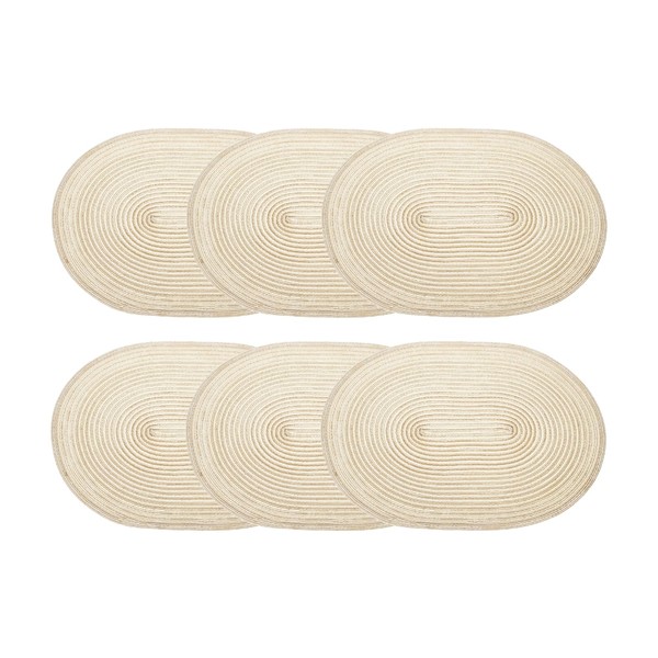sourcing map 6pcs Oval Braided Placemats 20" Non-Slip Oval Table Mats for Dining Tables Washable Heat Insulation Woven Placemats Indoor Outdoor for Family Holiday Dinner, Yellow