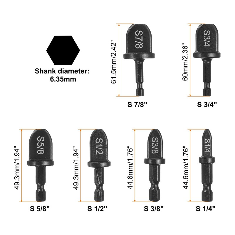- [Feature]: Size: 1/4" 3/8" 1/2" 5/8" 3/4" 7/8", Shank type: Hex Handle, Height: 44.6mm/1.76 inches, 49.3mm/1.94 inches, 60mm/2.36 inches, 61.5mm/2.42 inches, Shank diameter: 6.35mm/0.25inch