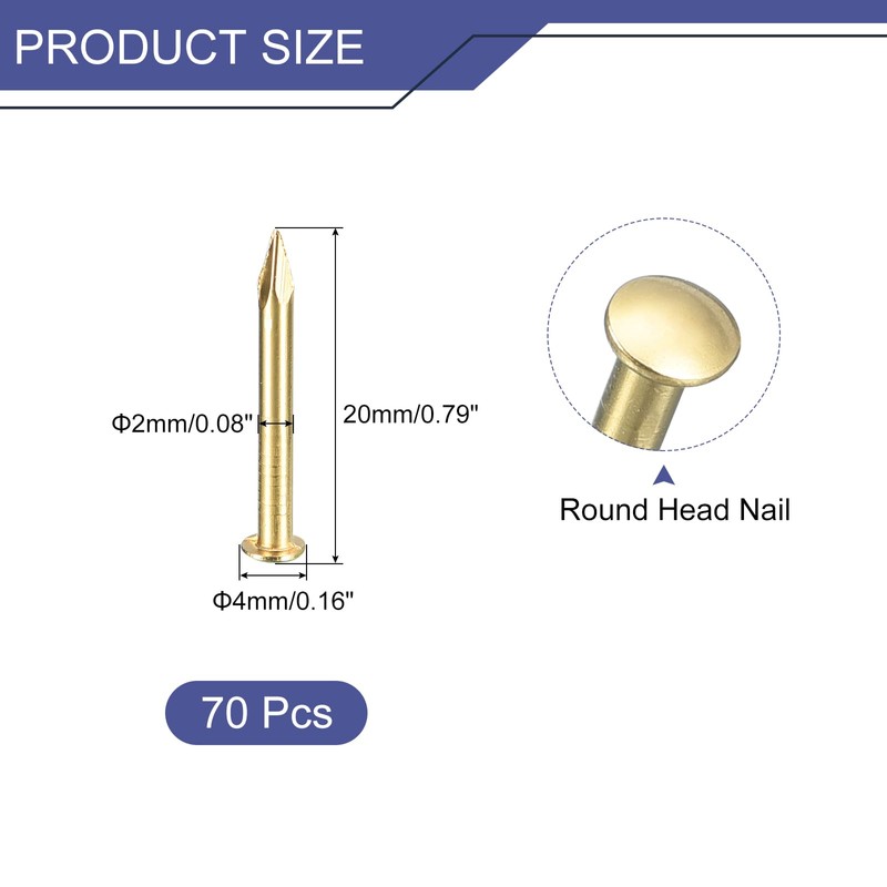 • [Small Tiny Nails] The head diameter of the brass nails is 4mm/0.16inch, and the total size is 2x20mm/0.08x0.79inch (D*L), you will receive 70 pcs small tiny nails, which can meet your daily needs.