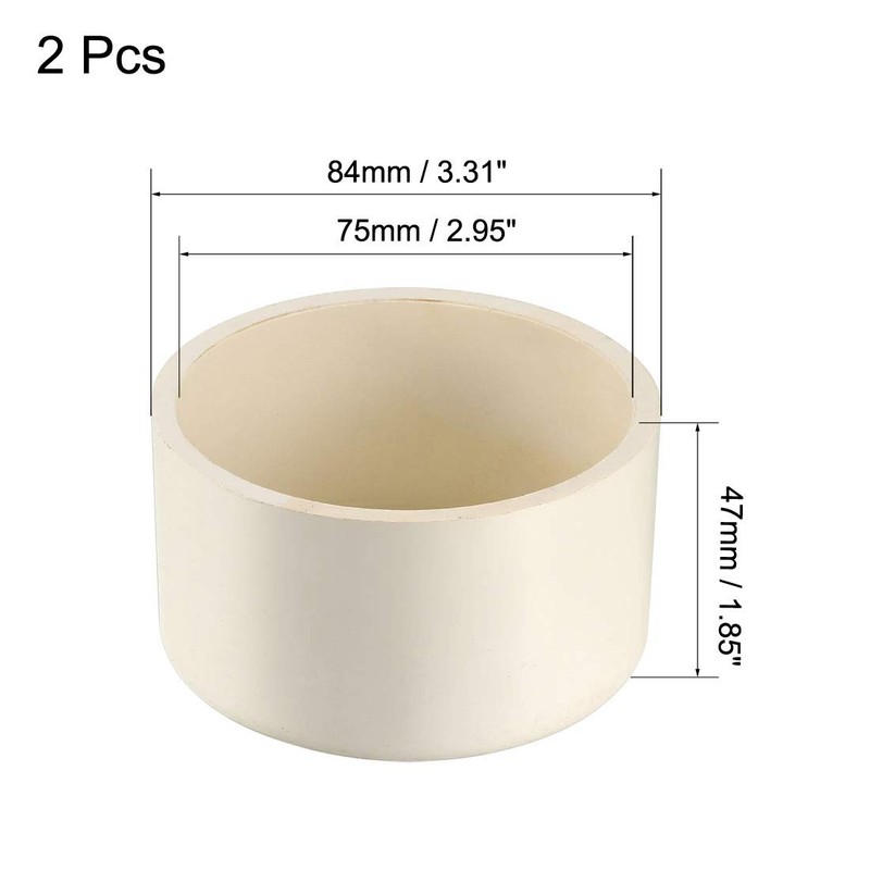 sourcing map 75mm PVC Pipe Cap Fitting, Slip End Caps DWV(Drain Waste Vent) White 2Pcs