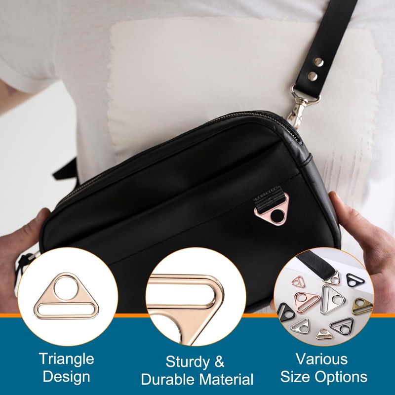 - Wide Application: This classic triangular D-ring buckle is versatile. It can be attached to belts, webbing, backpacks, handbags, purses, shoulder bags, cross-body bags, or any bag strap. It can also be used as a keychain or for hanging crafts, DIY accessories, and decorations.