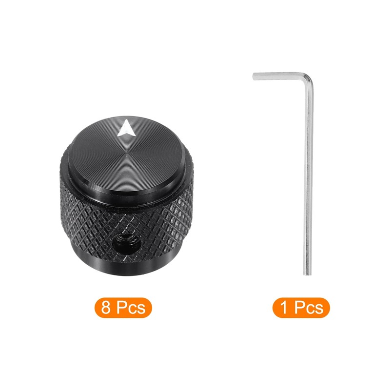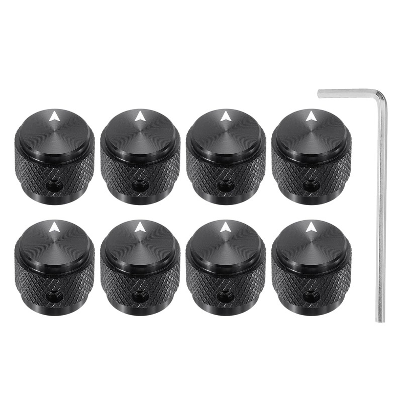 sourcing map 8 Pcs Aluminium Potentiometer Knobs, 1/4"(6mm) IDx5/8"(15mm) ODx1/2"(13mm) Height Universal Volume Tone Control Knobs for Guitar, Bass, Arrow Indicator, Black