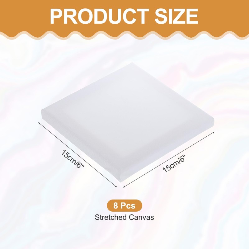 - Color: White, Material: Pure cotton, Size:6 x 6inch/15x15cm, Internal dimensions: 11x11cm/4.33x4.33inch, In the package of: 8 x Stretched Canvas