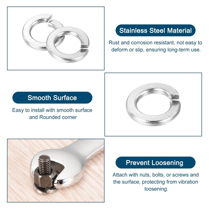 • [Prevent Loosening] - Split lock washers provide a reliable, secure fastening solution that act as a cushioning and locking mechanism between nuts, bolts, or screws and the surface, protecting fastened components from vibration loosening.