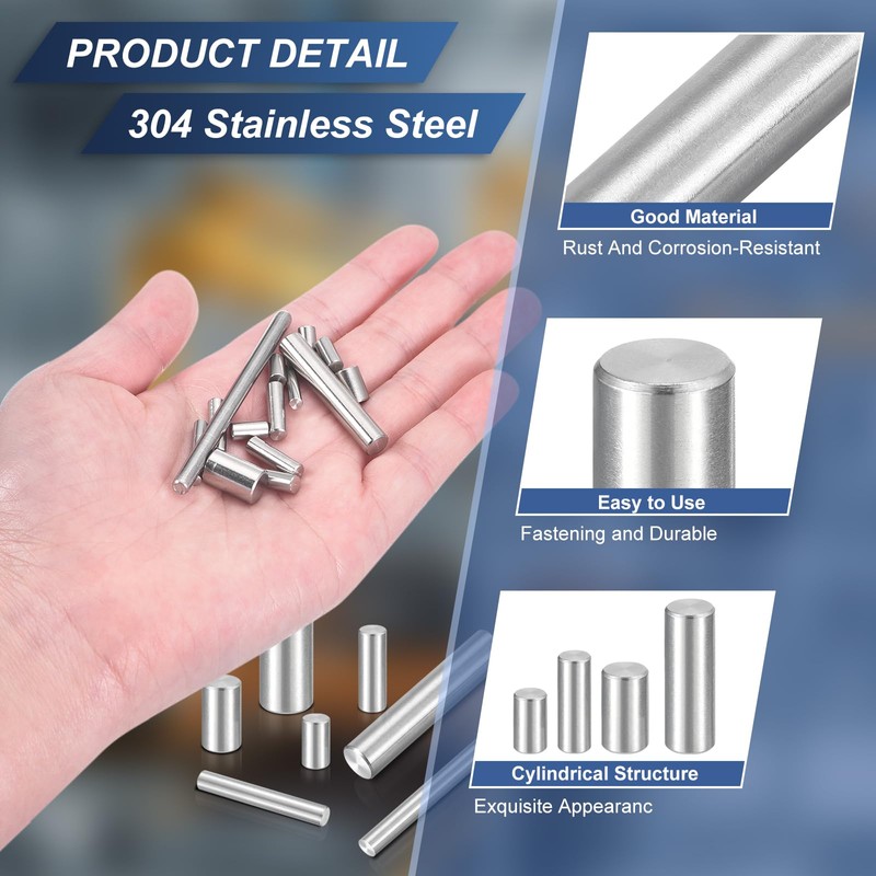 • [MATERIAL]: These dowel pins are made of 304 stainless steel, which has good hardness, load-bearing capacity, and reliability. They are anti-corrosion and anti-rust and can be used to fix parts of different materials. Durable and strong, long service life