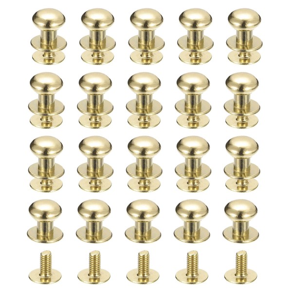 sourcing map 8mm Ball Head Stud Rivets Screw Back, 50Pack Round Head Button Nipple Rivet for DIY Leather Craft Handbag Belt, Light Golden