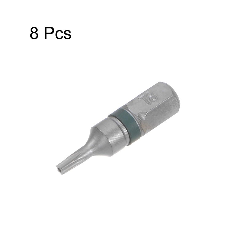 sourcing map 8pcs T8 Torx Hex Screwdriver Bit 1/4" Hex Shank 1" Length S2 Steel Magnetic Power Drill Bits
