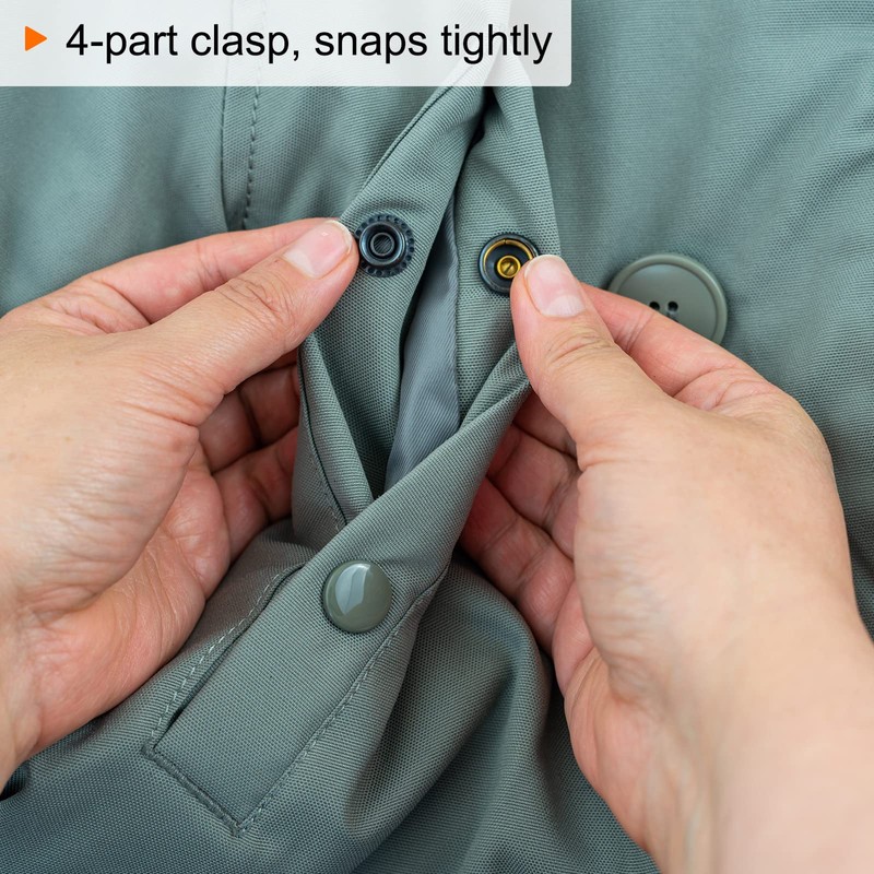 - STURDY MATERIAL The snap fasteners for clothes set is made of metal with electroplating process, snaps tightly, solid and durable, anti-rust and anti-corrosion for long time use.