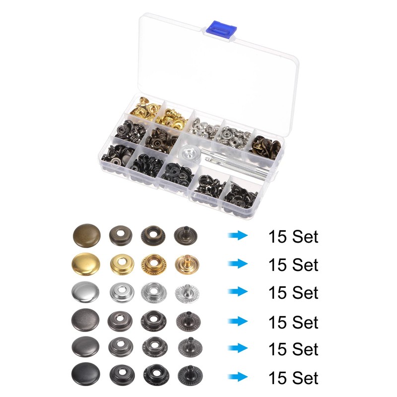 Sturdy Material The button snap button set for clothes is made of copper, aluminum and carbon steel with plating process, snap tightly into place, sturdy and durable, rust and corrosion resistant for long time use.