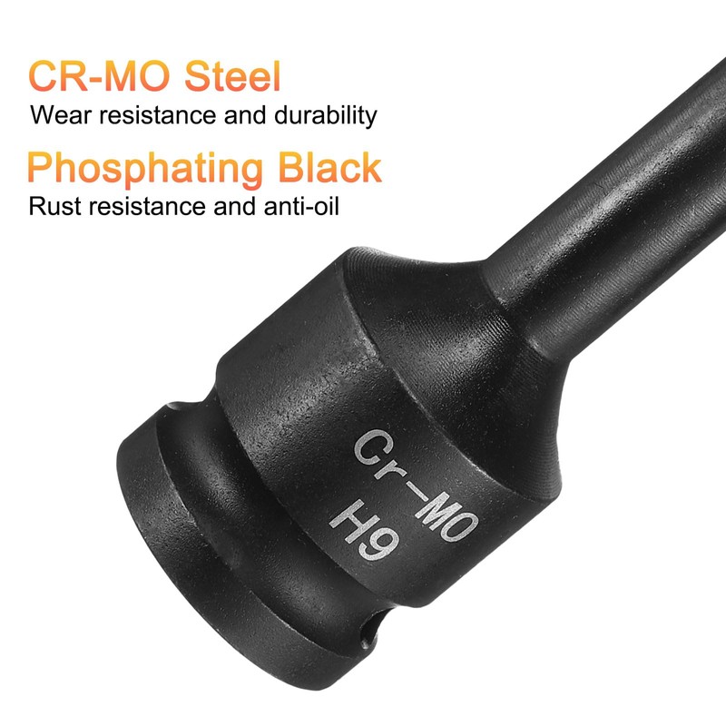 sourcing map 9mm Hex Impact Bit Socket H9 1/2" CR-MO Steel Phosphate Black Impact Drive Hex Bit Sockets Lengthen Hex Screwdriver Socket Adapter for Auto Mechanics Work Repair Maintain