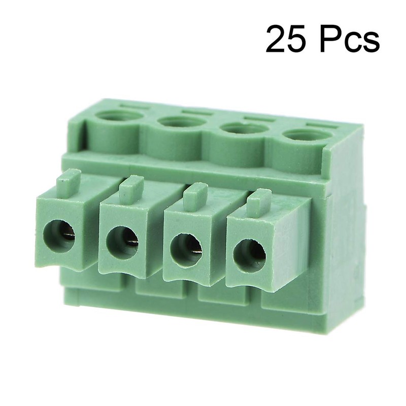 sourcing map AC300V Pitch 4P Flat Angle Terminal Strip Plug Green 8A 3.5mm