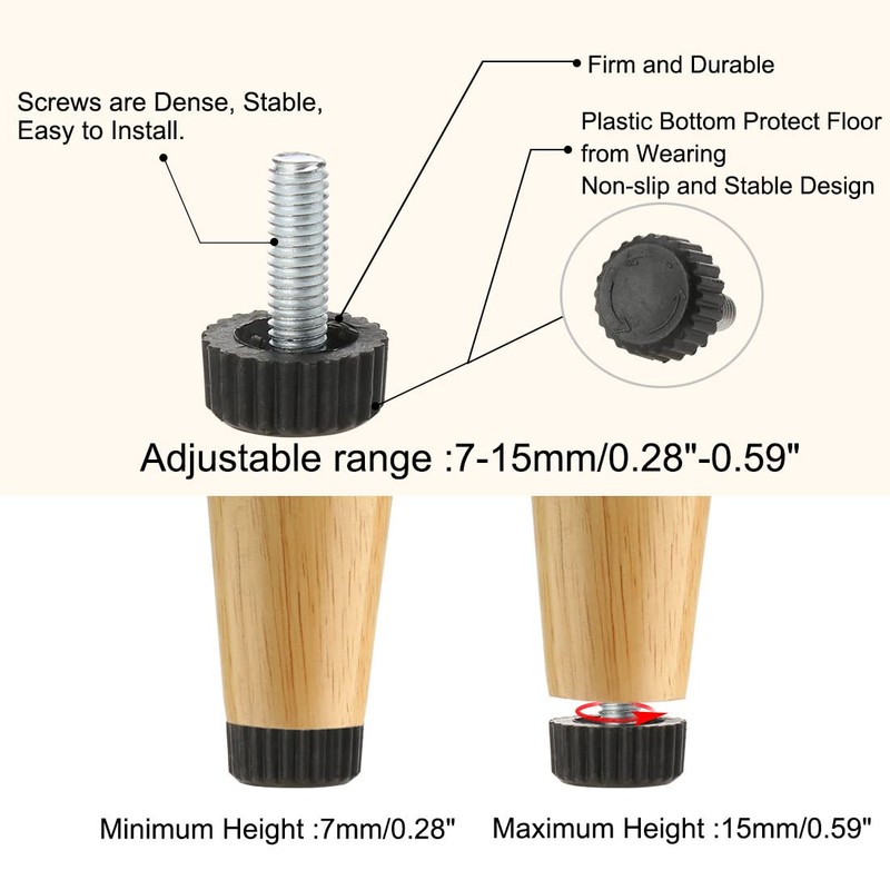 - Size – Product size: M6 x 18 x 18 mm/M6 x 0.71 inches x 0.71 inches (thread diameter x thread length x base diameter); adjustable range of height: 7-15 mm/0.28-0.59 inches; base size: 18 x 7 mm/0.71 inches x 0.28 inches (D x H)